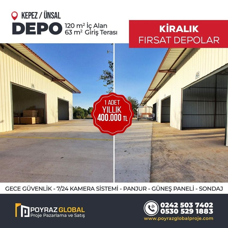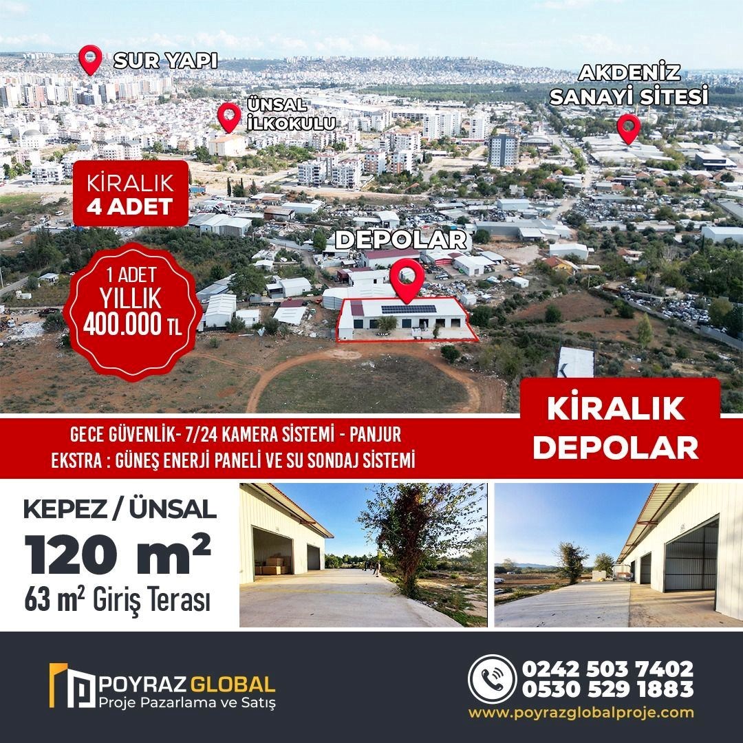 POYRAZ'DAN ÜNSAL MAHALLESİNDE 120m² KİRALIK DEPO Antalya, Kepez, Ünsal